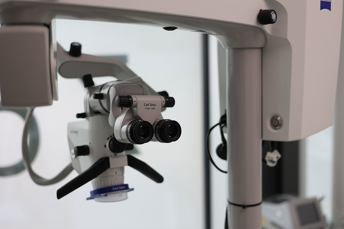 Der Nerv eines Zahns kann nach starkem Kariesbefall, aber auch nach Schäden am Zahn absterben. Im Bereich der Wurzelspitze kann es zu einer Entzündung kommen, die nicht nur den Zahn selbst, sondern auch den Zahnhalteapparat gefährdet. Eine Wurzelspitzenresektion dient dazu, sämtliche erkrankten Gewebe unter Erhalt des Zahns zu entfernen. Für diesen exakten chirurgischen Eingriff sind Erfahrung und Genauigkeit Voraussetzung. Wir bieten Ihnen exakte Resektion von Wurzelspitzen im Zuge einer Wurzelbehandlung.